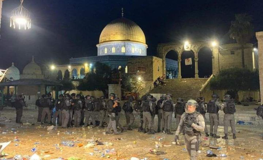 وسُمع دوي عشرات الطلقات في باحة المسجد، وقالت مراسلة صحافية إنّ دخاناً تصاعد من المكان في البلدة القديمة بالقدس.