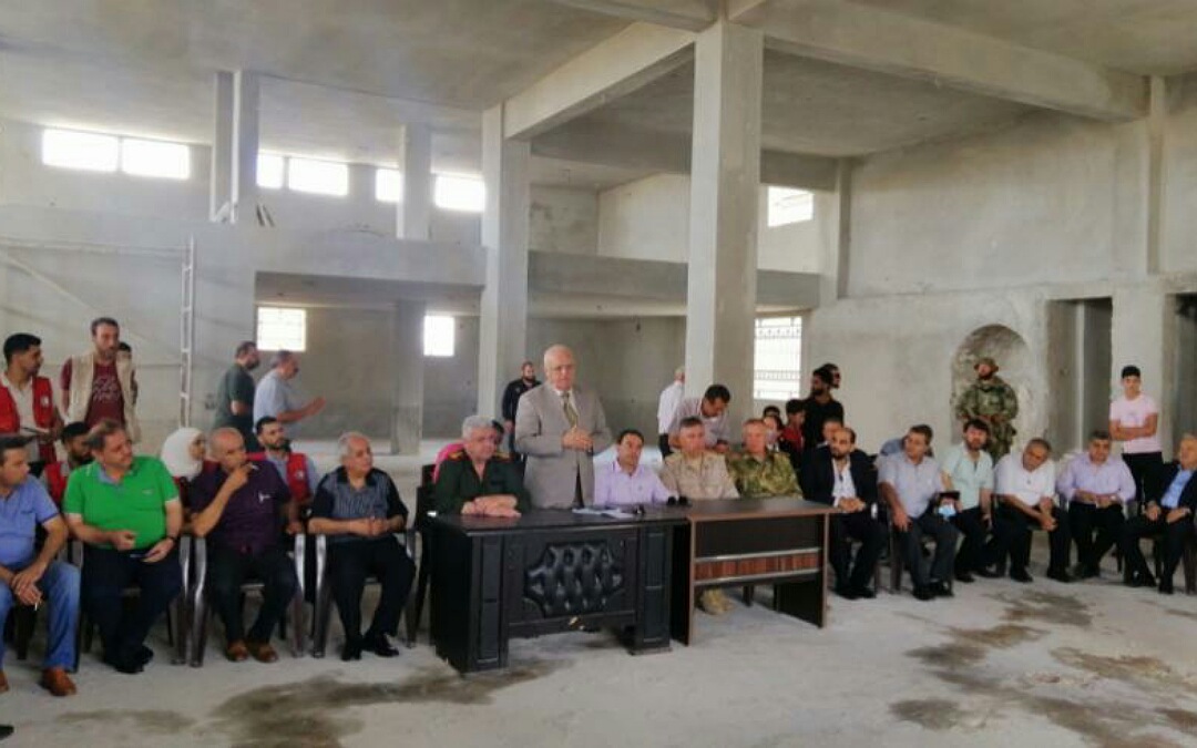عقد اجتماع اليوم السبت، ضم ممثلين عن النظام السوري وروسيا مع ممثلين عن الأهالي في درعا البلد، وذلك بهدف بحث تنفيذ باقي بنود اتفاق التسوية، تزامنا مع دخول مساعدات الهلال الأحمر السوري للمنطقة بعد انقطاع لنحو 3 أشهر.