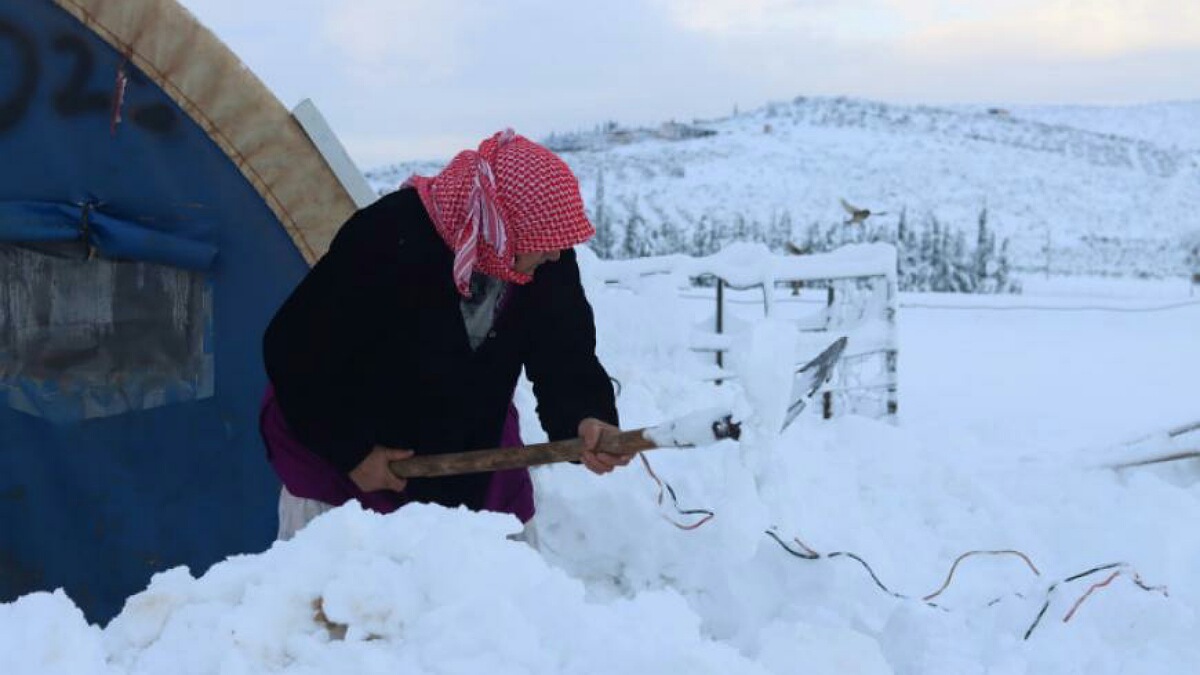 وأشار الحساب إلى “صور وقصص مأساوية لسوريين تضرروا من جراء العاصفة الثلجية شمال غرب سوريا مؤخراً”.