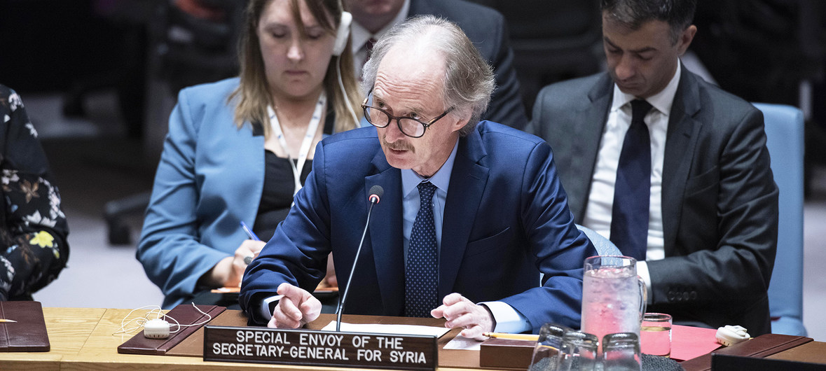 قدم المبعوث الأممي الخاص إلى سوريا، غير بيدرسون، إحاطة إلى مجلس الأمن الدولي حول التطورات السياسية والعسكرية في سوريا، ونتائج مباحثاته مع وزير خارجية النظام السوري، وليد المعلم، ورئيس “هيئة التفاوض”، أنس العبدة.