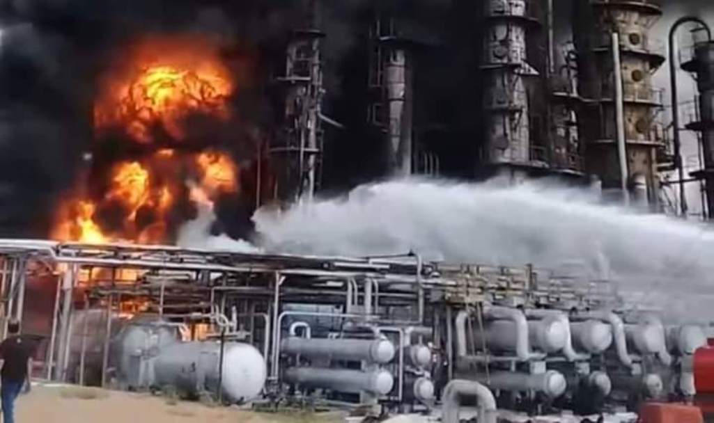 أعلنت وكالة “سانا” الرسمية للأنباء عن نشوب حريق كبير في إحدى وحدات التقطير 100 بسبب تسرب من إحدى المضخات ضمن المصفاة وقد تم عزلها بشكل كامل وجاري العمل على إخماد الحريق .