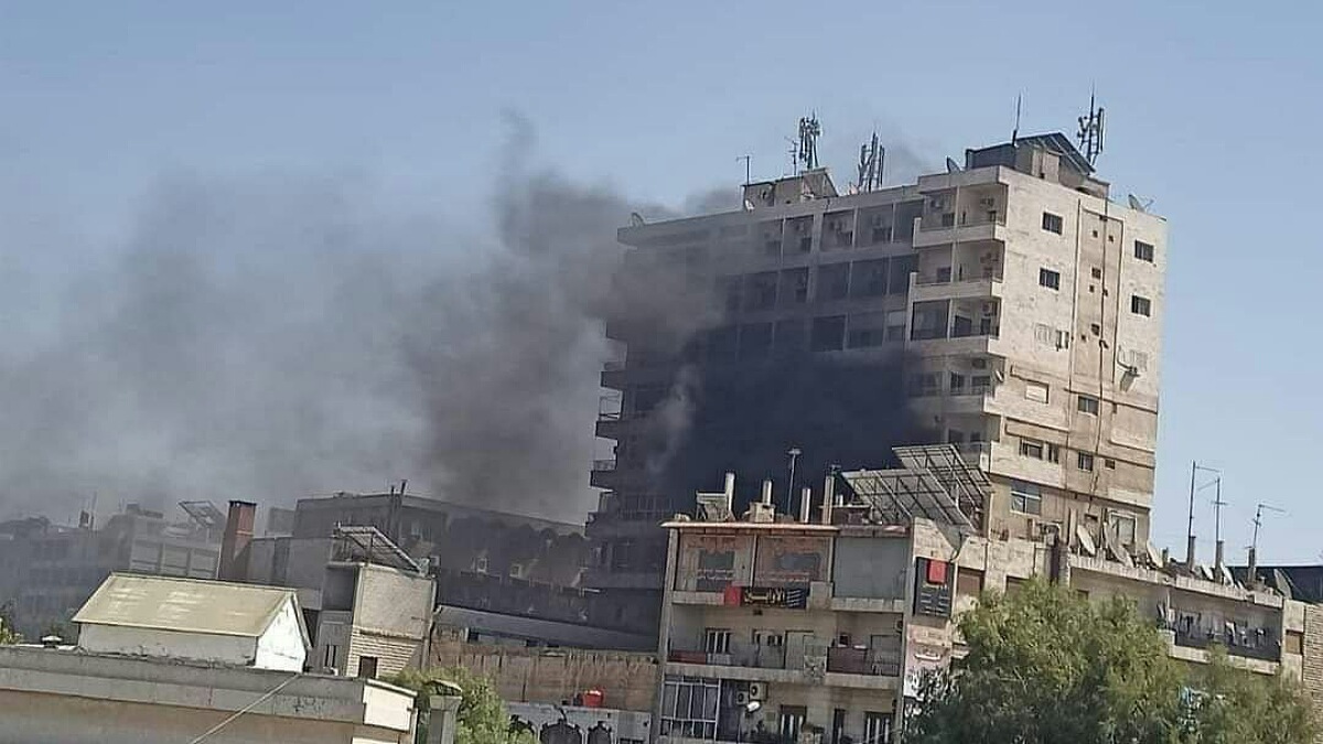وتداول نشطاء على مواقع التواصل الاجتماعي، صورة لحريق كبير يلتهم عدّة طوابق في مبنى السجل العقاري بمدينة حماة.