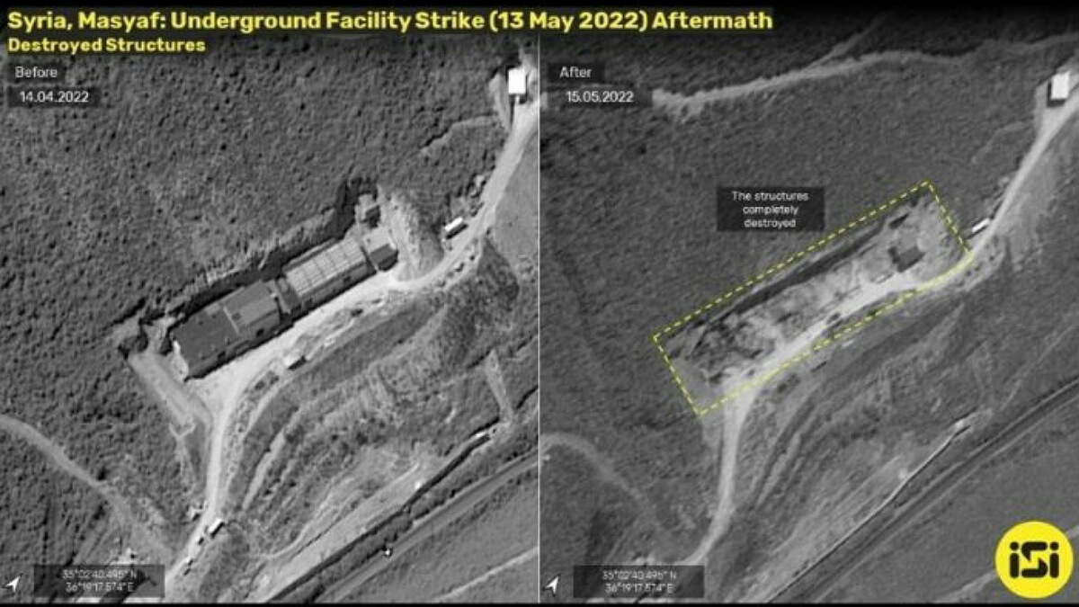 أظهرت صور التقطت عبر الأقمار الصناعية ونشرتها شركة الاستخبارات إسرائيلية (ImageSat International)، دماراً كلياً لحق بمبنى يتبع للبحوث العلمية في منطقة مصياف وسط سوريا، جراء القصف الإسرائيلي الجمعة الماضي.