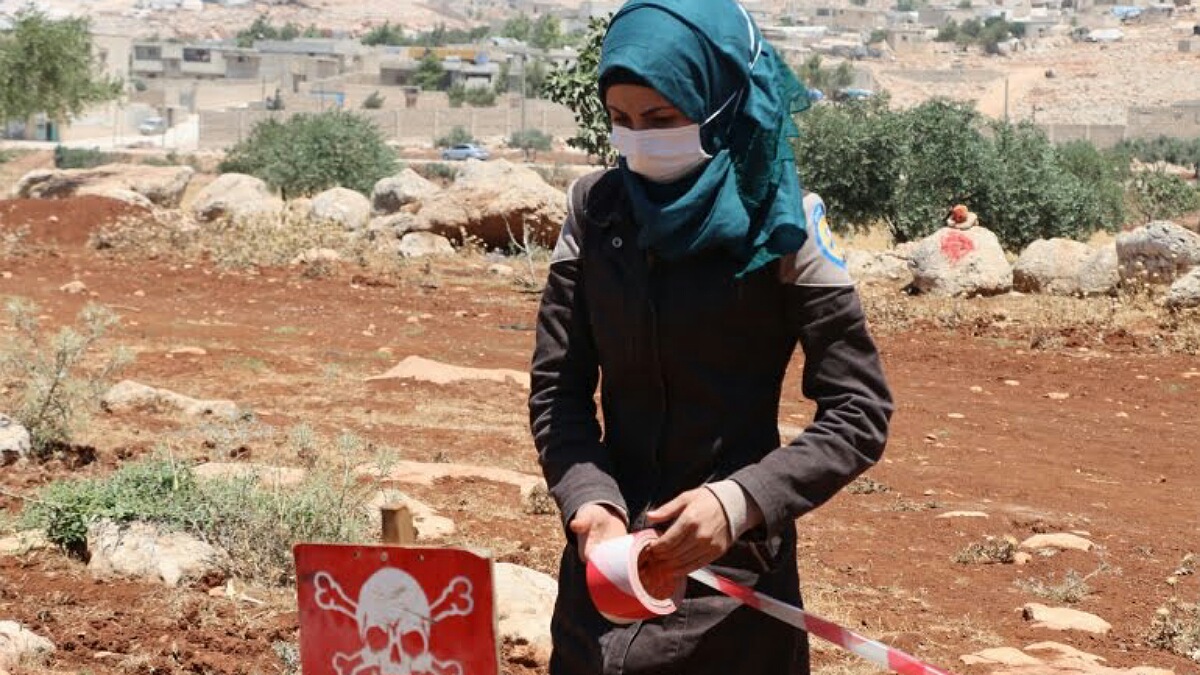 بدأت مريم الأسعد، المتطوعة الشابة في الدفاع المدني السوري، خطواتها الأولى في “فريق الذخائر غير المنفجرة” (UXO)، بعد أن كان يقتصر على المتطوعين الرجال، لما ينطوي العمل فيه على مخاطر ومحاذير كبرى، في منطقة تشهد حربا دامية منذ أكثر من عقد من الزمان.