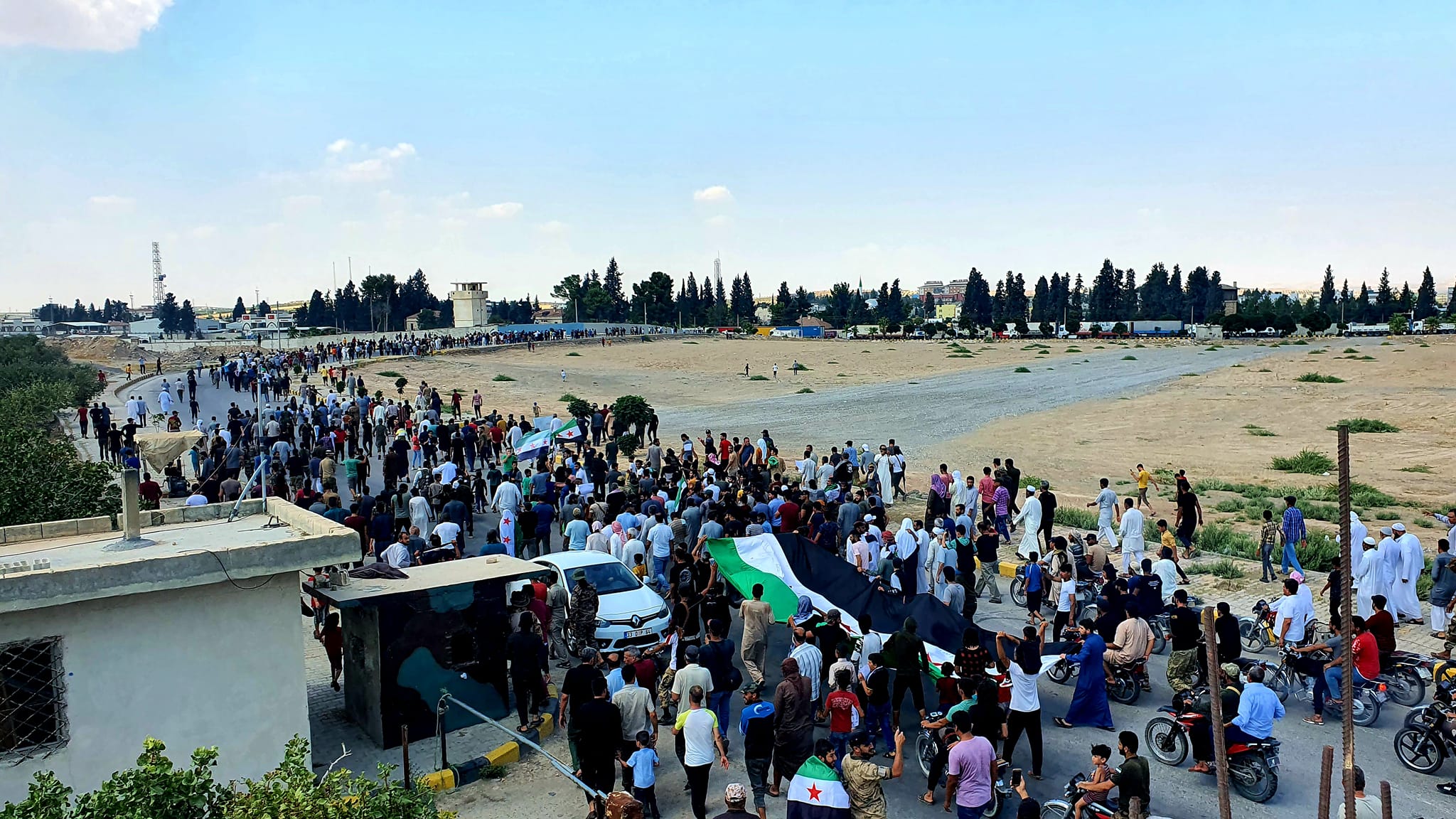 كذلك شهدت مدن وبلدات ريفي حلب الشمالي والشرقي، كالباب واعزاز ومارع وجرابلس وعفرين وجنديرس، ومدينتي تل أبيض ورأس العين شمال شرقي سوريا، مظاهرات غاضبة اليوم، حملت نفس المطالب، ونددت بأي عملية مصالحة أو تقارب مع نظام قتل مليون شخص، ويعتقل مئات الآلاف، وهجّر الملايين.
