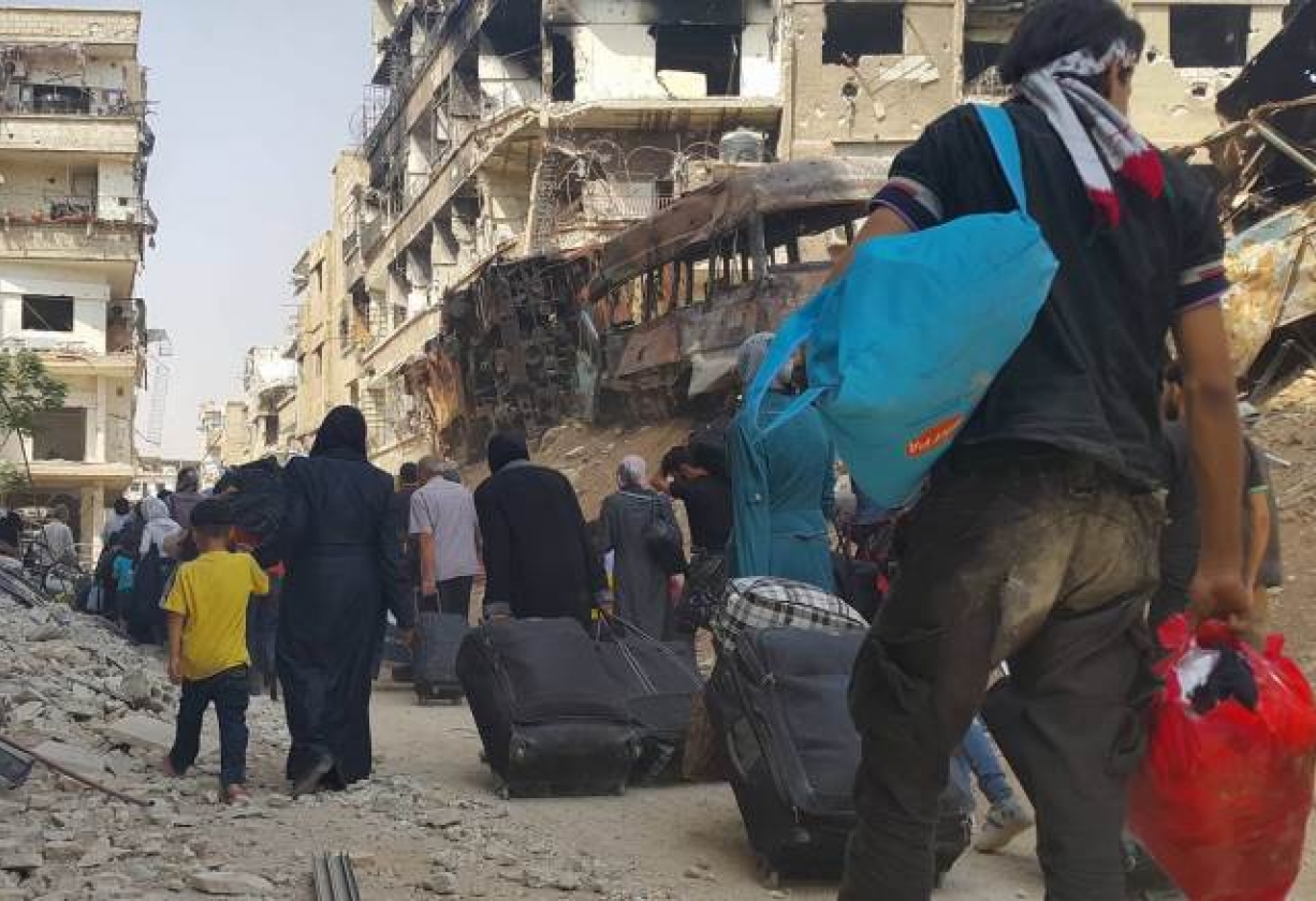 خلال الأسبوعين الأولين من شهر نيسان 2018، تم نقل أكثر من 50 ألف شخص من مدن وبلدات الغوطة الشرقية والغربية شمالاً باتجاه محافظة إدلب التي تسيطر عليها عدد من الفصائل، والمناطق الواقعة تحت الحماية التّركية في ريف حلب.