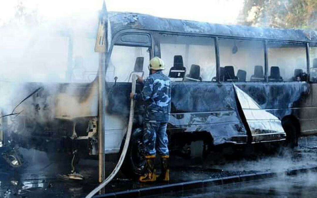 ونقلت وكالة الأنباء السورية سانا حينها، عن مصدر في موقع الانفجار قوله إن عنصر وهو سائق الحافلة لقي مصرعه، وأصيب 3 آخرون تم نقلهم للمستشفى.